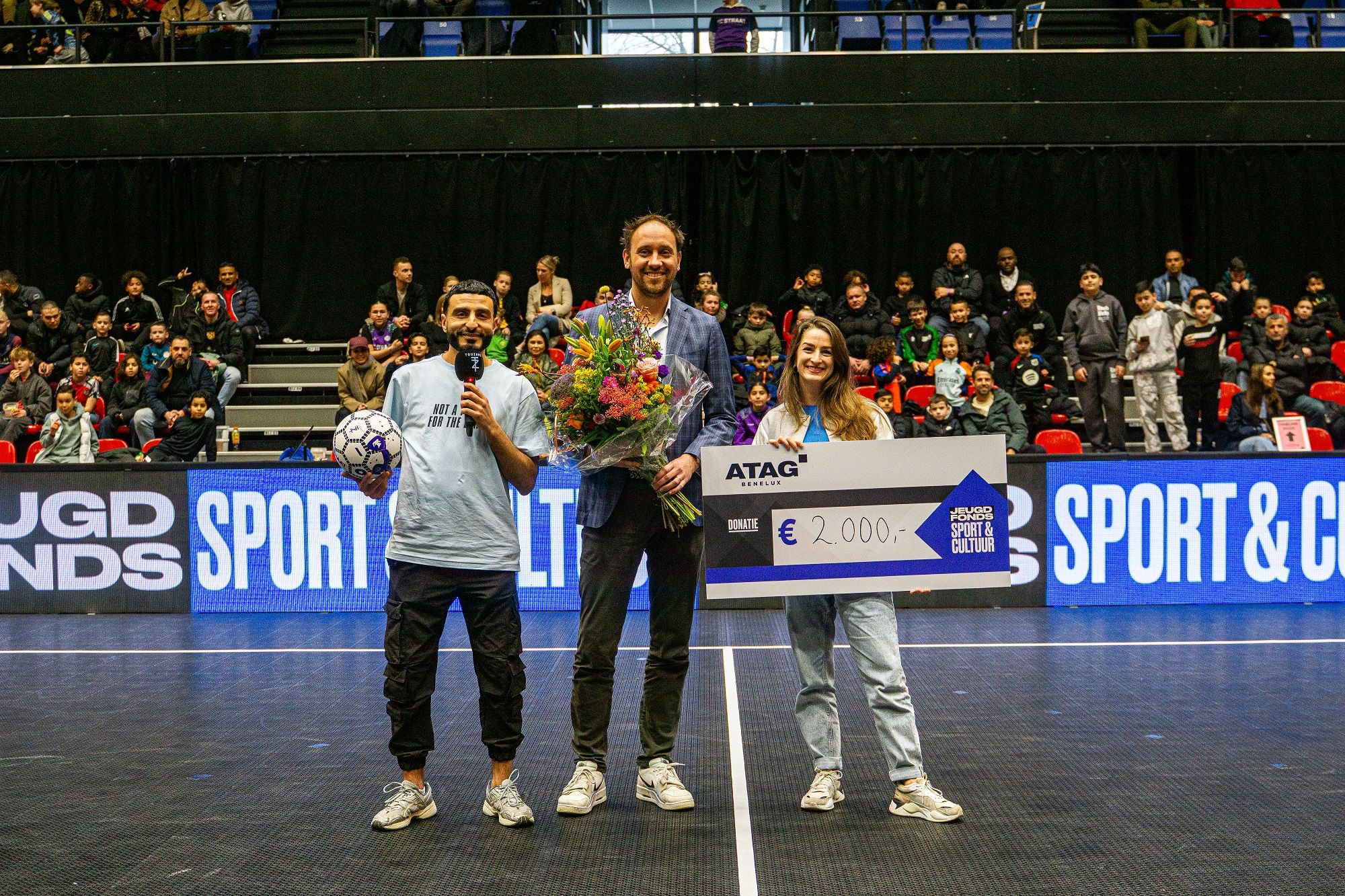 Vorige week mocht Nando Nengerman, Manager HRM & Facility Management bij ATAG Benelux, de cheque officieel overhandigen aan Anouk de Graaf, Marketingcommunicatie Specialist bij het Jeugdfonds Sport & Cultuur. Dit bijzondere moment vond plaats in het bijzijn van Soufiane Touzani, die met zijn label FC Straat eveneens het fonds ondersteunt.