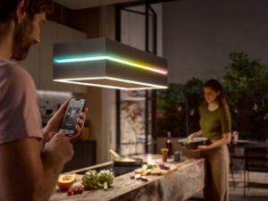 De Skyline Edge Play heeft een slanke behuizing waarin verlichting een prominente rol speelt. Je kunt de afzuigkap bedienen met handgebaren. Het is dus niet nodig om het apparaat of een afstandsbediening aan te raken en dat kan heel handig zijn tijdens het koken. Met name wanneer je vieze handen hebt.