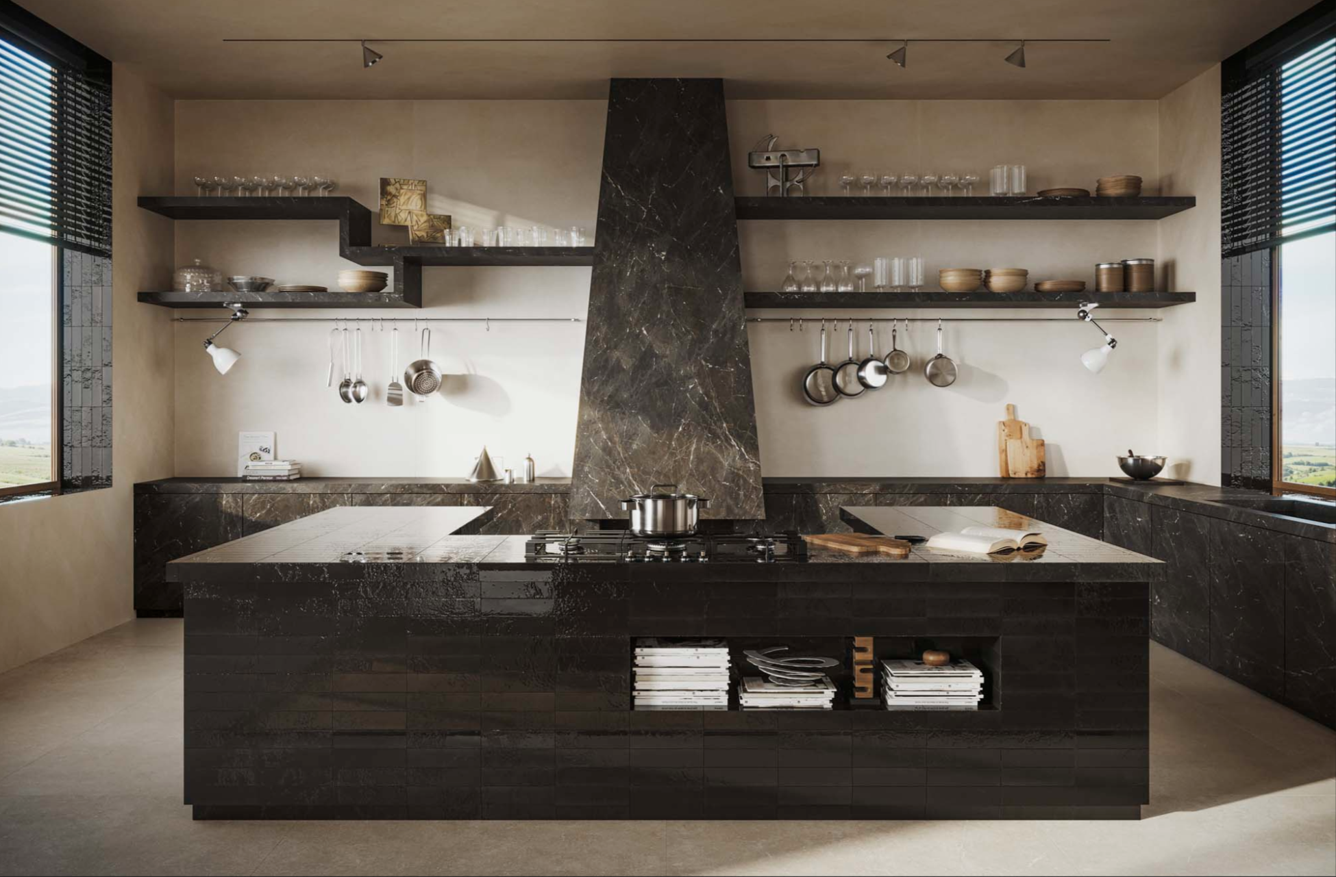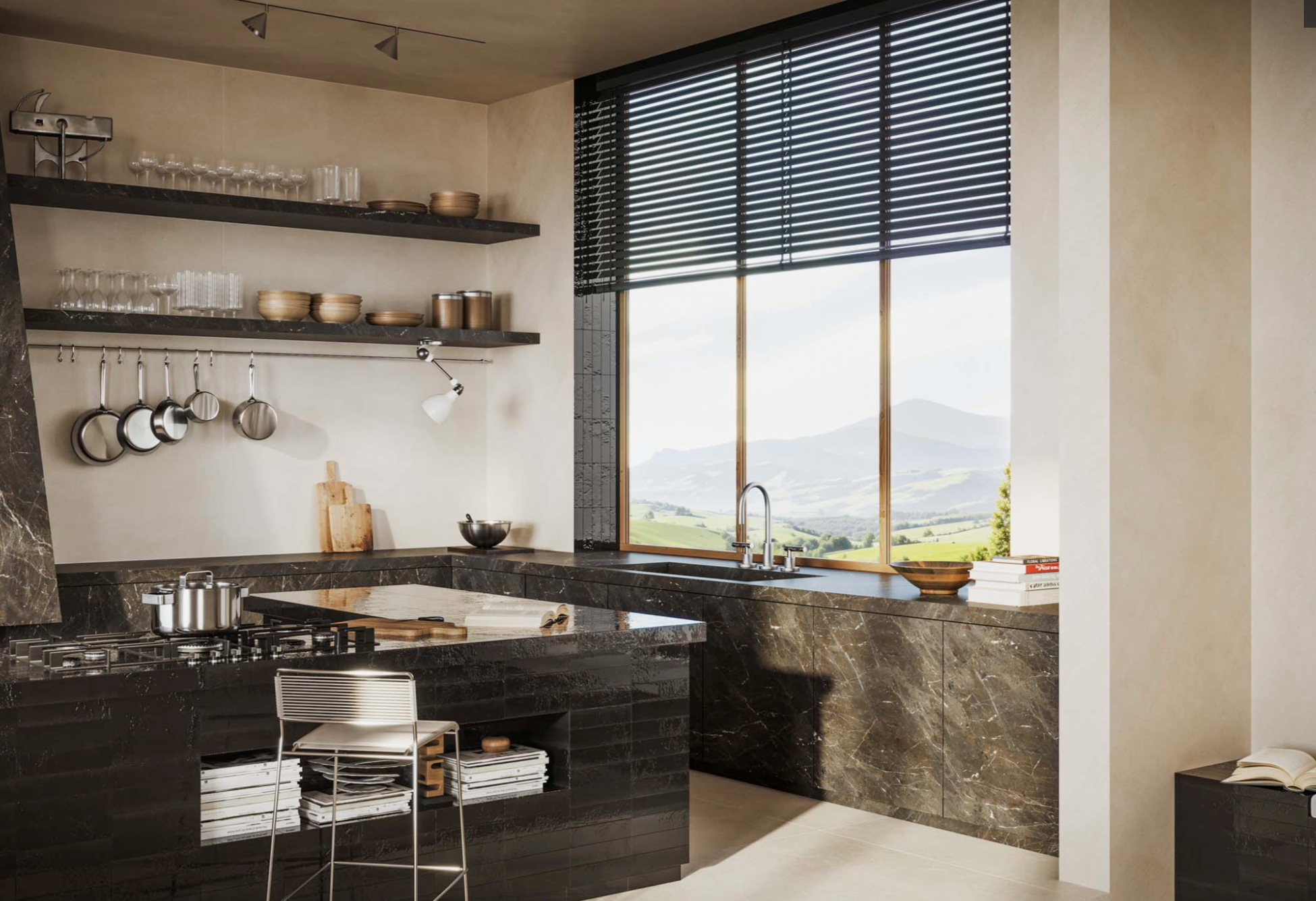 Wat oppervlakken betreft, is Albo Cibic vooral geïnteresseerd in hun zintuiglijke kwaliteit. “Ik vind grootformaat en ultradunne platen fascinerend: dankzij Italiaanse technologie zijn die te gebruiken van gevels tot aanrechtbladen en van vloeren tot wanden. Daarnaast spreken zachte afwerkingen, driedimensionale decoraties en verfijnde kleuren me aan. Met die combinatie kan ik resultaten creëren die dichter bij mijn persoonlijke smaak liggen.