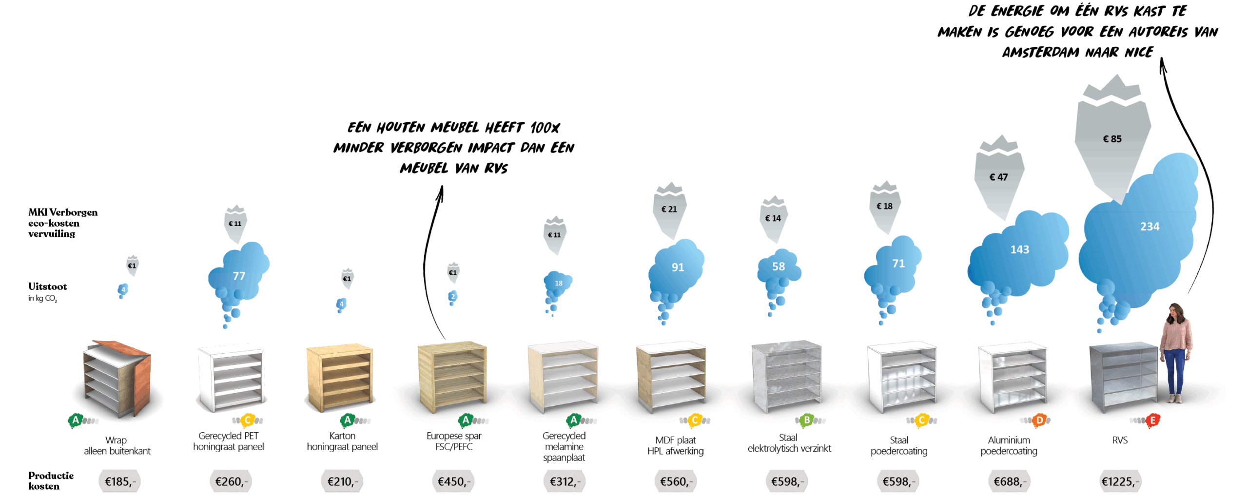 De ervaring uit andere branches komt hier goed van pas. Neem supermarkten: Een derde van hun CO2-impact zit in het staal van de winkelinrichting. Maar die schappen gebruiken ze eindeloos opnieuw. Daar merk jij als consument niks van, jij ziet het make-upje erbovenop. Het onderliggende systeem is echter tot in de puntjes geoptimaliseerd. Dáár zit de winst.”