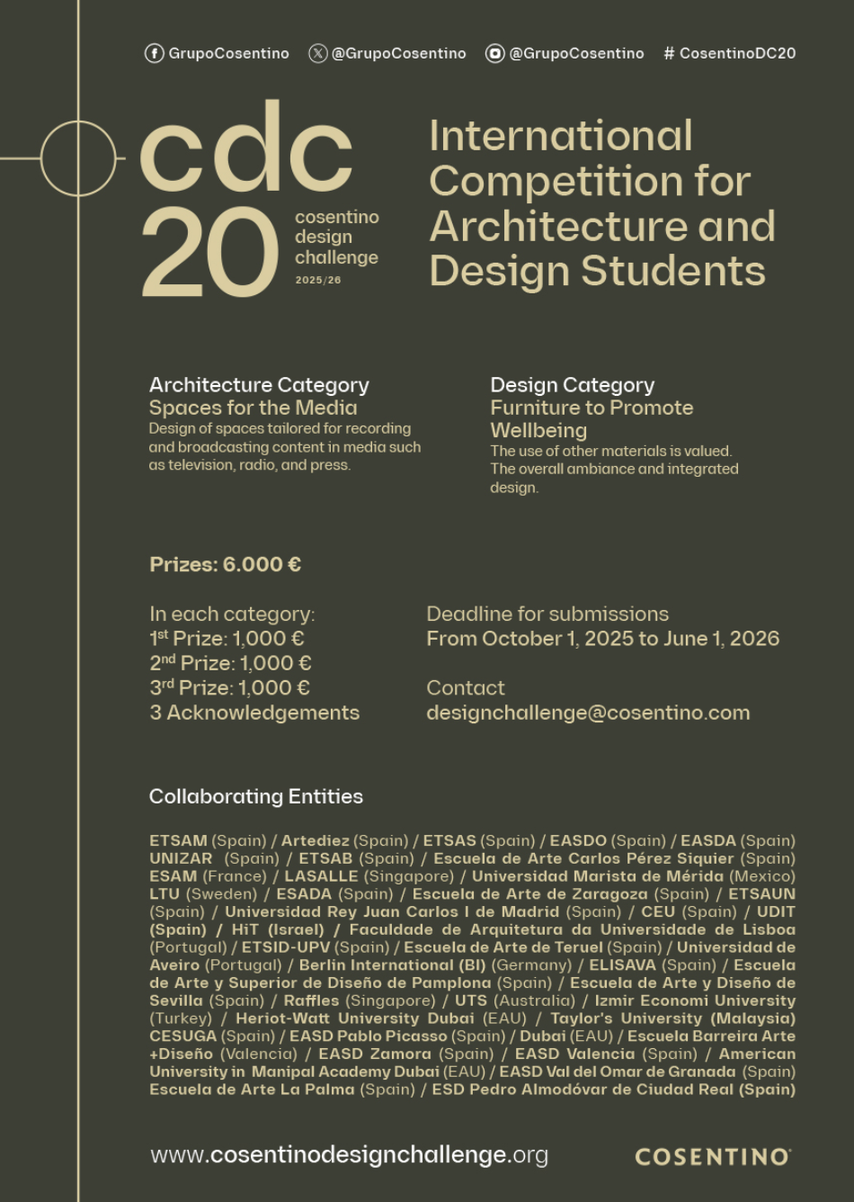 Meer informatie en inschrijven via: cosentinodesignchallenge.org/en/20th-edition/.