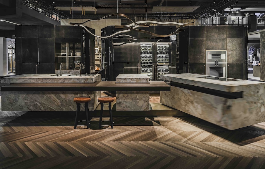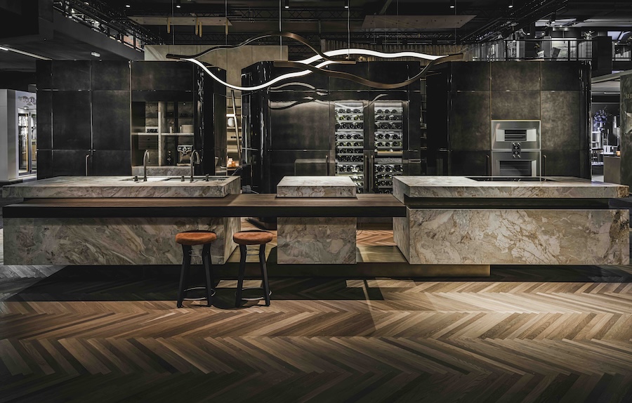 Betaalbaarder, maar nog altijd voor het topsegment (de prijs van het showroommodel ligt rond de 600.000 euro) en allerminst eenvoudig. De keuken bestaat uit beweegbare eilanden van massief marmer en is afgewerkt in exclusieve materialen.
