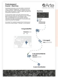 Arte wil inzichtelijk maken waar keukenbladen van worden gemaakt en waar ze vandaan komen. Daarom geeft de fabrikant en leverancier bij ieder materiaalsoort een eigen productpaspoort. Zo kan men precies zien welke weg een keukenblad heeft afgelegd.