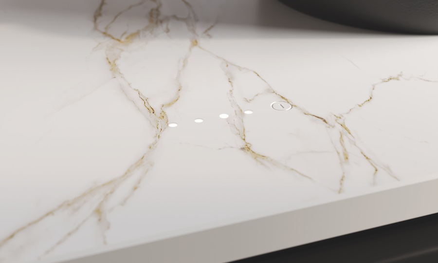 Het apparaat is opvallend door juist niet op te vallen. Je kunt de kookplaat qua kleur namelijk aan laten sluiten op de kleur van het werkblad.