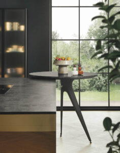 De tafel kan tijdens het koken bijvoorbeeld als bar dienen, waar gasten aan borrelen. De tafel wordt ondersteund door afgeronde, fluweelmat gelakte poot of een filigraan metalen onderstel in onyxzwart met poedercoating. Het tafelblad is verkrijgbaar in natuursteen, SensiQ, keramiek of kwartssteen. Verder is er keuze uit een diameter van 100 of 120 centimeter.