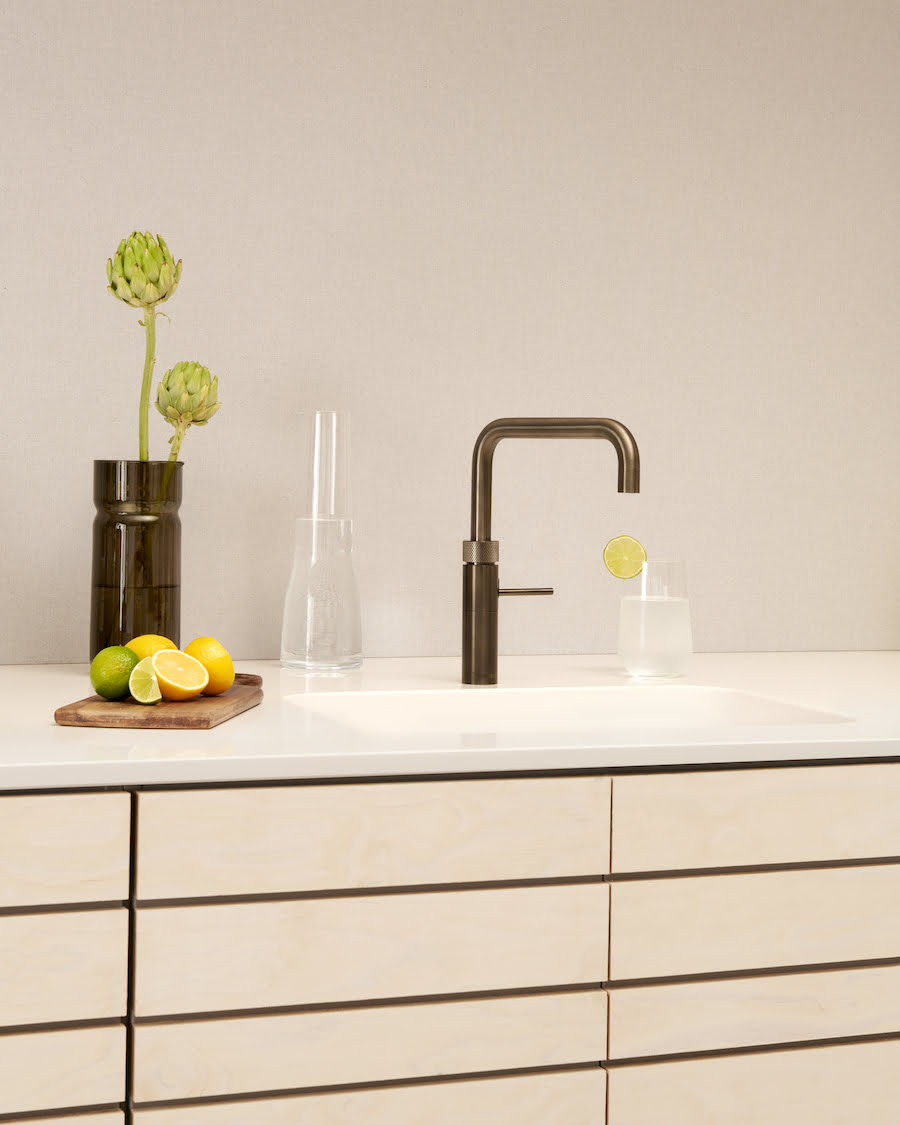 De kranen Fusion en Flex geven direct koud, warm en kokend water. Daarnaast is de Flex uitgerust met een flexibele uittrekslang, zodat je met je koude of warme waterstraal overal bij kunt. Wil je ook gekoeld en bruisend water uit de Quooker halen? Combineer hem dan met de CUBE.