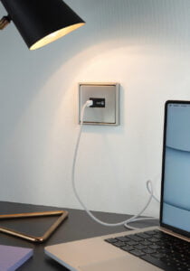Tegen 2025 is de integratie van een USB-C-aansluiting verplicht voor verschillende toestellen in de EU. JUNG anticipeert hierop en introduceert de A 550- en LS 990-reeksen met een gloednieuwe USB-C-poort die tot 60 Watt aankan. Dit betekent dat je onder meer je laptop kunt opladen met een fast charger. De USB-lader kan in A-range, AS-range, CD-range en LS-range.