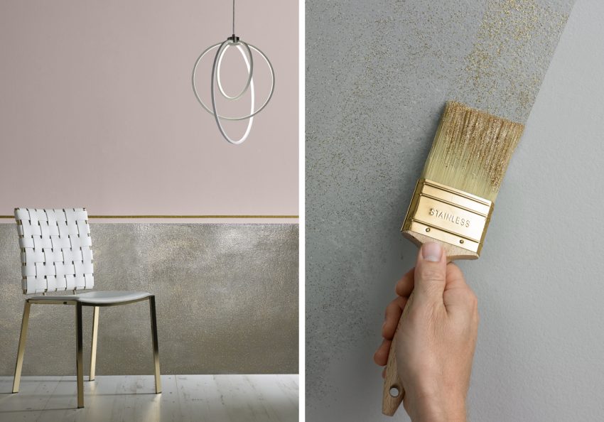 Voor een bijzondere styling van de keuken levert Graham & Brown een verf die letterlijk op de muur schittert. Een transparante, glanzende topcoat met gouden of disco glitters.