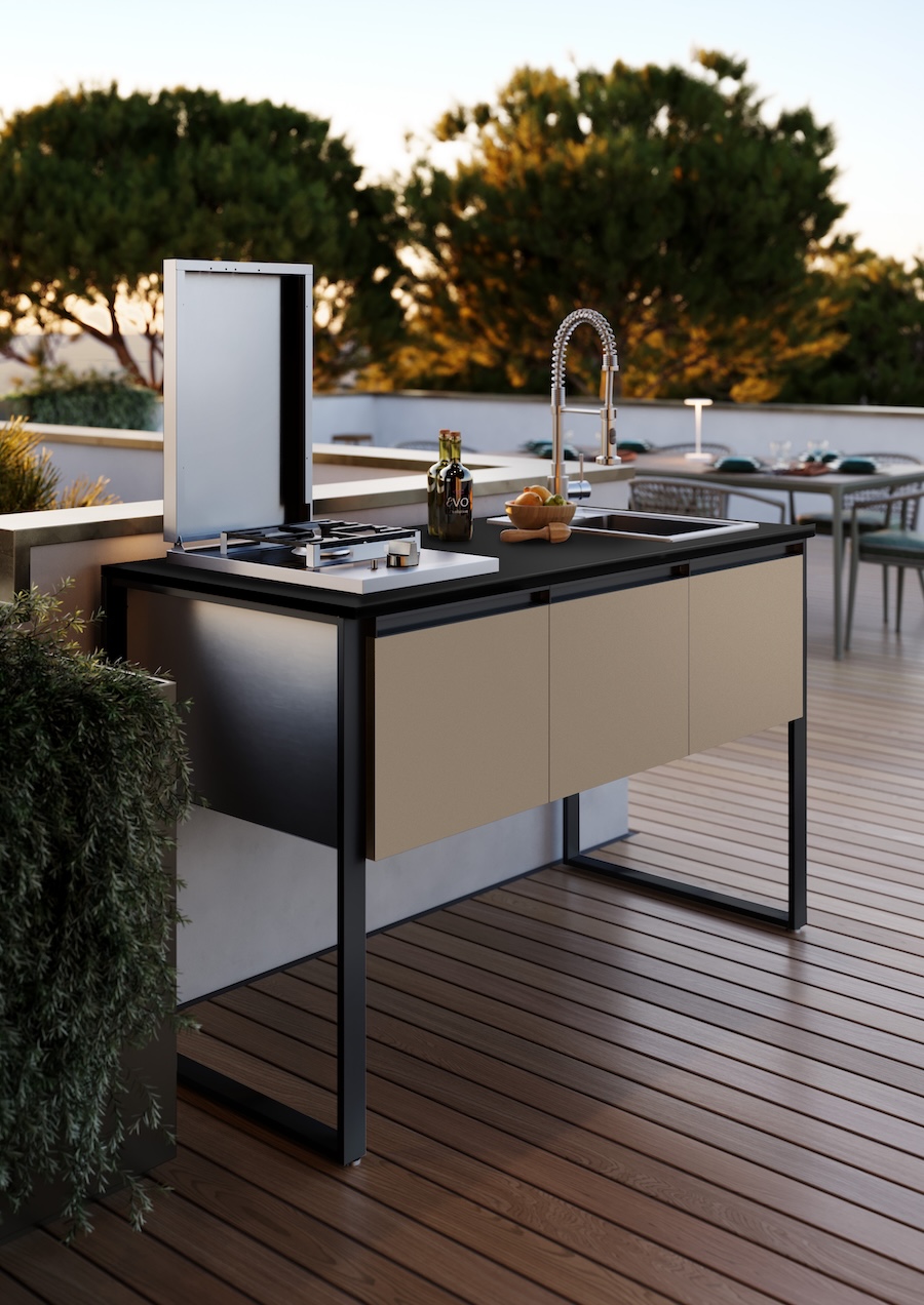 De gloednieuwe GEA outdoor collectie van STEEL is gemaakt van het weerbestendige SAE 316 marine grade rvs. De greeplijsten en poten zijn eveneens gemaakt van rvs, maar kunnen ook in het zwart uitgevoerd worden. Voor de kastfronten heeft de consument keuze uit drie kleuropties: Antracite, Nuvola of Sabbia.