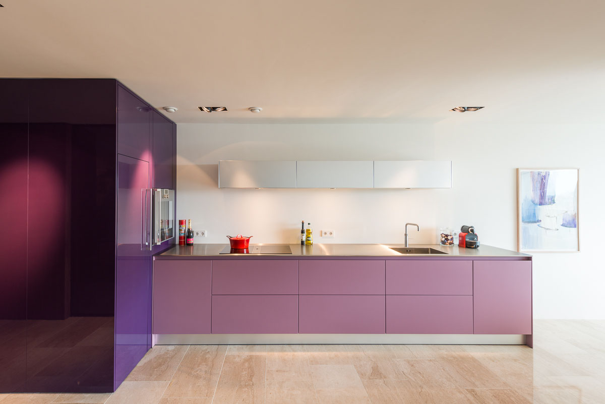 Dat bewijst het portfolio van Keuken-Meyt wel. Danielle Westen ontwerpt al bijna een kwart eeuw keukens en kan zich een exemplaar van meer dan zestien jaar geleden nog goed herinneren. “Die keuken werd uitgevoerd in een hele aparte roze tint, die bijna naar het paars neigt. Vervolgens hadden de bewoners de hoge kasten in een dezelfde tint, maar dan veel donkerder, geverfd met een hoogglanslak. Als je de kleurstalen zag, dacht je ‘dat is gewaagd’. Maar in de uitvoering klopt het gewoon en dat is ook wel bewezen, want de bewoners hebben er nog steeds niets aan veranderd. Ze vinden het nog altijd een fijne keuken.