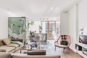 Die hotelsfeer vertalen naar een woonhuisproject was een droom van Van Mourik. Dit huis, in een mooie Rotterdamse wijk, betreft een oud pand daterend uit 1920. Toen ze aan dit project begon stonden er alleen vier muren met en dak erop. Aan het bestaande pand is 60 m² toegevoegd.