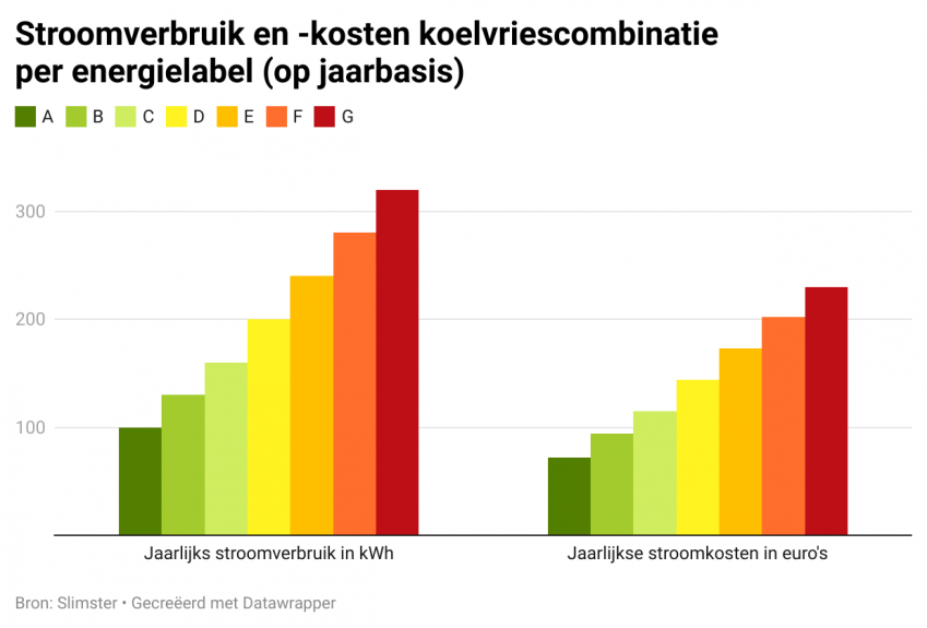 Zo filtert bijna een op de vijf Nederlanders die een nieuwe vriezer wil kopen op een laag energieverbruik. Bovendien meldt Slimsterd dan het aantal Nederlanders dat speciale pagina’s over energiezuinige koelkasten bekijkt met meer dan 350 procent is toegenomen.