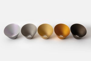 Voor het interieur zijn vijf schelpen verkrijgbaar die makkelijk te monteren zijn. Zij worden geleverd in het zwart, zilverbrons, brons, champagne en goud. De lampen kunnen zowel als plafondlampen als wandarmaturen dienen.