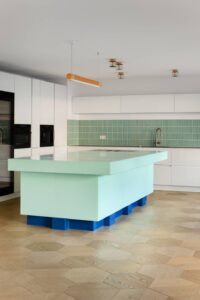 Stephanie Thatenhorst, een interieurarchitect, heeft een tweede woning aan de oevers van het Bodenmeer op ingrijpende wijze gemoderniseerd. Een opvallend element van dit renovatieproject was het monolithische keukenaanrecht gemaakt van HIMACS Emerald, op maat gemaakt door Werkkollektiv GmbH in Stuttgart, Duitsland.