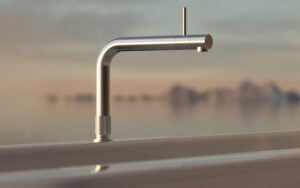 De nieuwste kraan van Quooker heet Front. Het ontwerp van dit model is eenvoudig, maar de geïntegreerde technologie niet. De kraan kan alle soorten water leveren: van koud en warm tot 100 graden kokend, gekoeld en bruisend water.