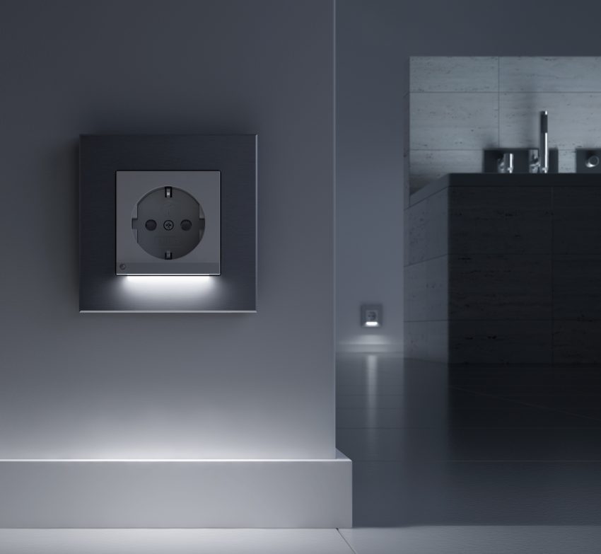 Wie ’s nachts even het bed moet verlaten, is in het pikkedonker vaak zijn oriëntatie een beetje kwijt. Daar heeft fabrikant Gira wat op gevonden: een wandcontactdoos met oriëntatieverlichting voorzien van een lichtsensor.