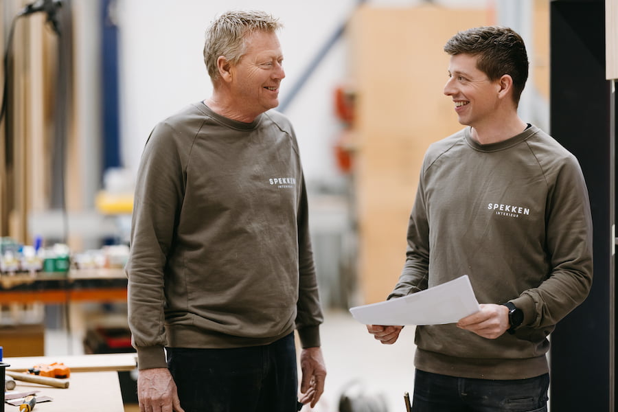 Spekken Interieur onderscheidt zich volgens vader en zoon door de uitstekende kwaliteit en het gebruik van goede materialen. “Dat is voor ons altijd het uitgangspunt”, benadrukt Cor. “We staan altijd voor onze klanten klaar, we denken met hen mee en zoeken voor alle problemen een oplossing. We vinden het leuk om ons ergens helemaal in te verdiepen en speciale dingen te maken. Dat is de kracht van de meubelmaker.”
