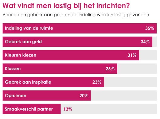 Belangrijke keuzecriteria bij de aankoop van een meubel zijn op de eerste plaats het prijskaartje, daarna de kwaliteit en op nummer drie het uiterlijk. Merkentrouw blijft daarbij nog steeds relatief laag met 24 procent. Daarbij komt dat bijna driekwart van de consumenten open staat voor nieuwe woonmerken.