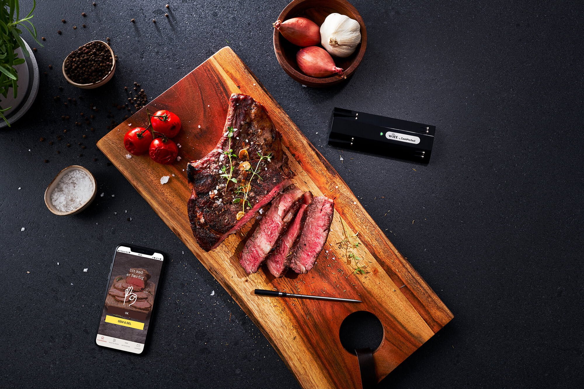 Het bedrijf CookPerfect heeft een uitgebreid technologieplatform en een enorme know-how op het gebied van productontwikkeling. Hun unieke vleesthermometer is op de markt sinds 2018 en wordt momenteel wereldwijd verkocht. Het product is al een integraal onderdeel van Witt’s product portfolio onder de merknaam “Witt by CookPerfect”.